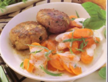 6. Die gebratenen Frikadellen auf Teller geben, das Möhrengemüse dazu